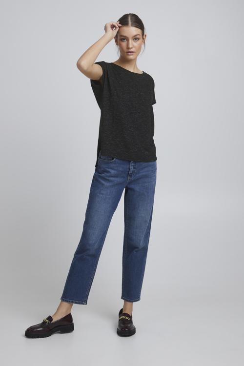 Combineer dit veelzijdige shirt met een pantalon voor een verzorgde dagelijkse look of draag het bij je favoriete jeans voor een ontspannen uitstraling. De zwarte kleur past bij vrijwel elke kleur broek of rok in je garderobe. Voor een complete outfit style je het shirt met sieraden in zilver- of goudtinten. Dit Ichi T-Shirt 20109945-194008 van Ichi blijft door de tijdloze vormgeving seizoen na seizoen een waardevol basisstuk in je kledingkast.