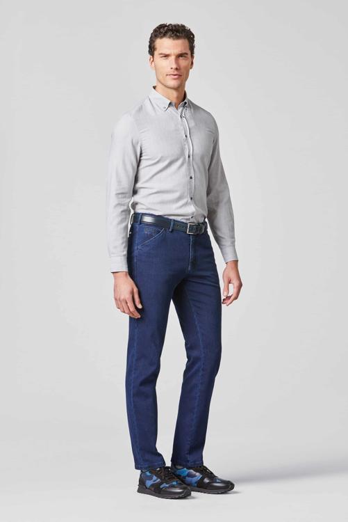 De Chicago jeans van Meyer combineert vakmanschap met draagcomfort. Door de donkerblauwe kleur combineer je deze herenbroek gemakkelijk met zowel een overhemd als een poloshirt. De rechte pasvorm zorgt voor een tijdloze uitstraling die je jarenlang met plezier draagt. Voor een verzorgde casual look draag je deze Meyer broek met een lichtblauw overhemd en leren schoenen. De hoogwaardige afwerking zie je terug in de nauwkeurige stiksels en de kwalitatieve knoop- en ritssluiting.