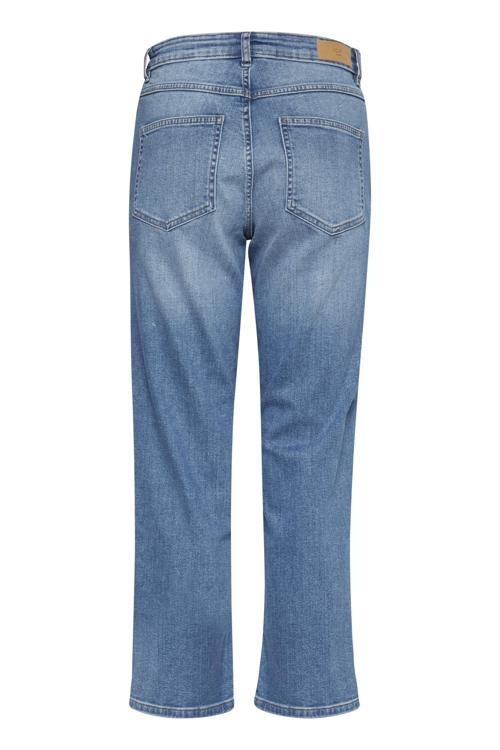 • Comfortabel katoen met 2% elastaan • Straight fit met rechte pijpen • Lichtblauw denim met wassingen • Praktische vijf-zaks indeling • Leren Ichi label detail