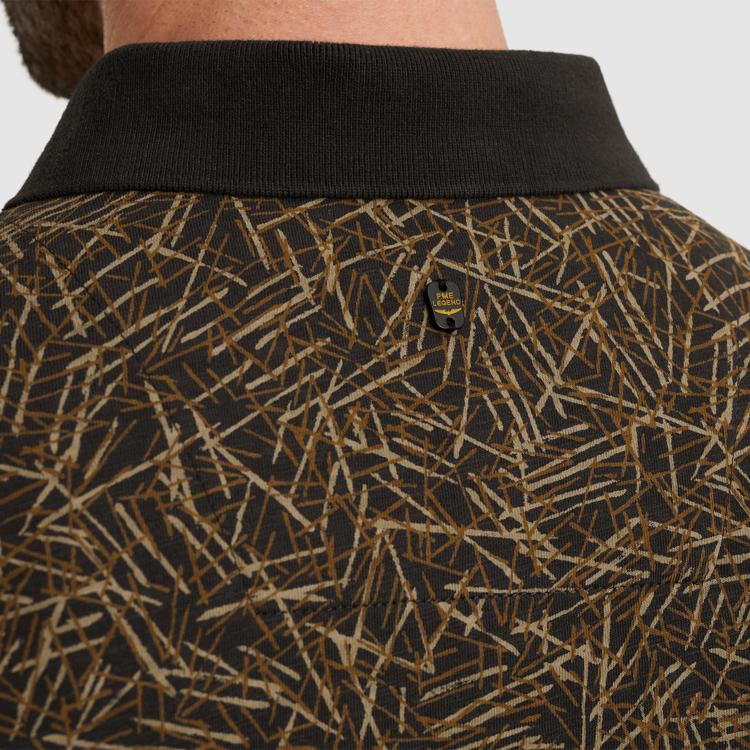 Deze donkergroene polo van PME Legend kenmerkt zich door het subtiele bladerprint dat over het hele shirt loopt. Het 100% katoenen materiaal voelt prettig aan op de huid en ademt goed tijdens warmere dagen. De korte mouwen hebben zwarte afwerking aan de uiteinden, wat een stoer contrast geeft. De klassieke polokraag met knoopsluiting en het kleine PME Legend label op de borst maken het ontwerp compleet.