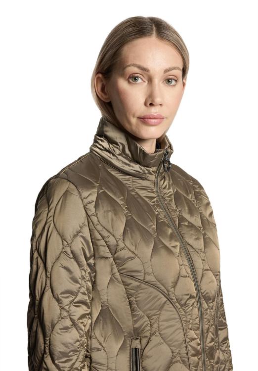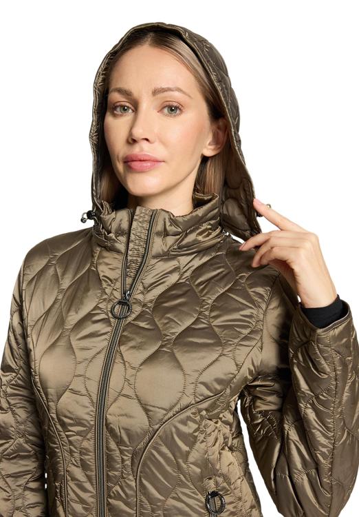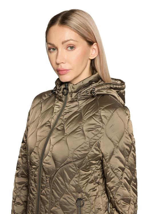Dit gewatteerde jack in taupe van Betty Barclay combineert stijl met draagcomfort. Het karakteristieke ruitpatroon zorgt voor een verfijnde uitstraling, terwijl de afneembare capuchon je extra bescherming biedt wanneer nodig. De doorlopende ritssluiting maakt het jack praktisch in gebruik. Het polyamide materiaal voelt licht aan en is eenvoudig te onderhouden, waardoor je er lang plezier van hebt.