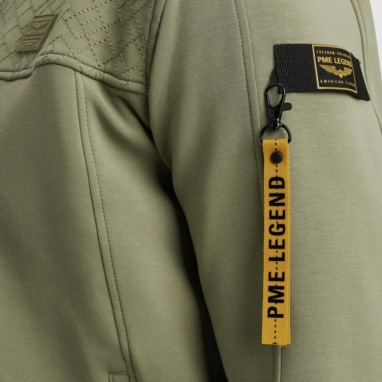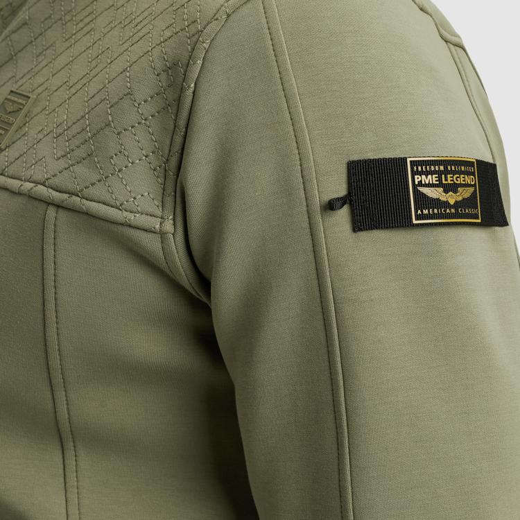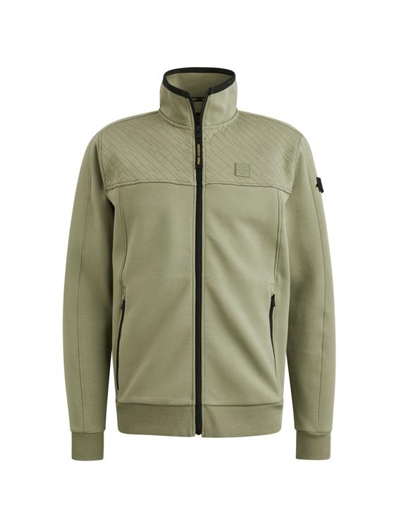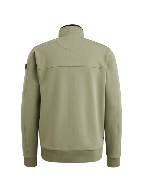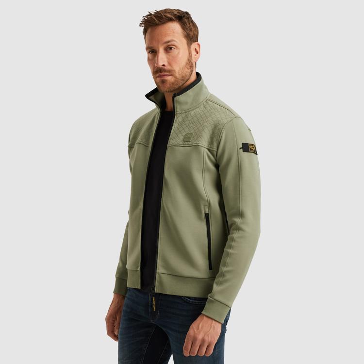 Deze groene sweater van PME Legend combineert comfort met stoere details. Het kledingstuk heeft een opstaande kraag en doorlopende ritssluiting voor praktisch draaggemak. De subtiele structuur op het bovendeel geeft je outfit een avontuurlijke uitstraling. Dankzij de materiaalsamenstelling van katoen, polyester en elastane voelt deze heren sweater aangenaam aan en beweegt hij soepel mee met je lichaam.