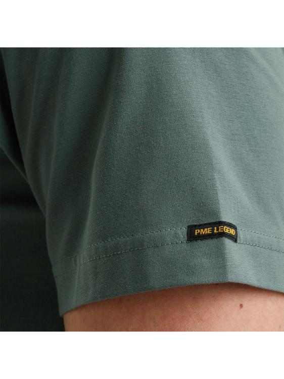 Dit groenblauwe T-shirt van PME Legend heeft een klassieke ronde halslijn en korte mouwen die je veel bewegingsvrijheid geven. Het shirt is voorzien van een klein labeldetail op de borst, wat het kenmerkende stoere karakter van het merk benadrukt. De rechte pasvorm zorgt voor een comfortabel draaggevoel zonder strak te zitten.