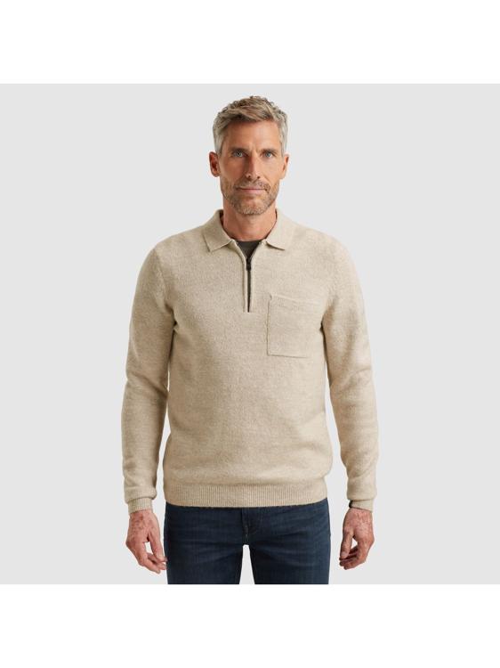 De neutrale beige tint maakt deze heren kleding Vanguard veelzijdig in combinatie. Draag de trui over een wit T-shirt voor een casual dagelijkse look of combineer hem met een donkere jeans voor een stoere uitstraling. De polokraag met ritssluiting biedt je de mogelijkheid om te variëren tussen een open of gesloten draagwijze.