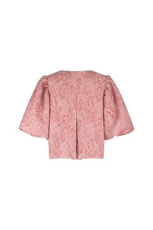 Dit roze jacquard jasje van Studio Anneloes combineert stijl met comfort door de gerecyclede polyester met metallic garen. Het jasje heeft korte mouwen met een opvallende pofstructuur en een ronde hals die je outfit een vrouwelijke touch geeft. De jacquard structuur zorgt voor een rijke textuur, terwijl de elastaan in de samenstelling je bewegingsvrijheid garandeert. Het jasje sluit met een enkele knoop aan de voorkant.