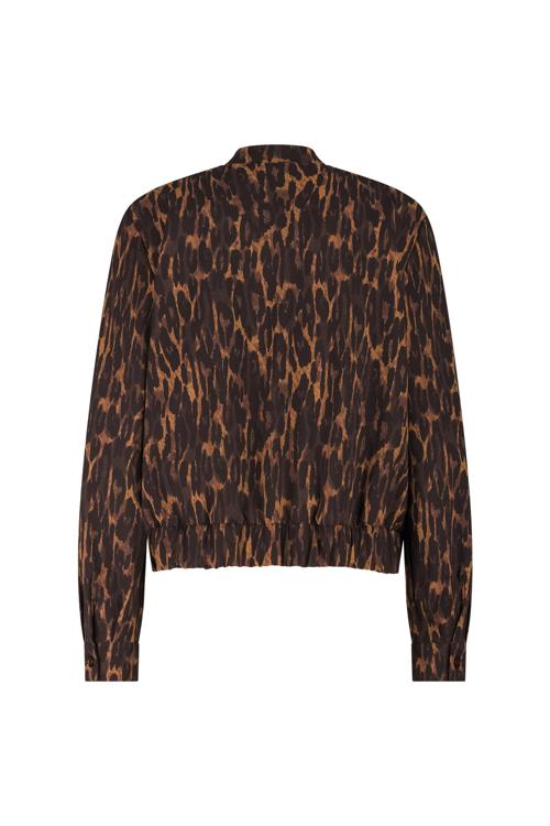 • Luipaardprint in bruin-cameltinten • Ribgebreide details voor comfort • 100% gerecycled polyester voering • Tailleerd model met sportieve uitstraling • Praktische steekzakken aan voorzijde