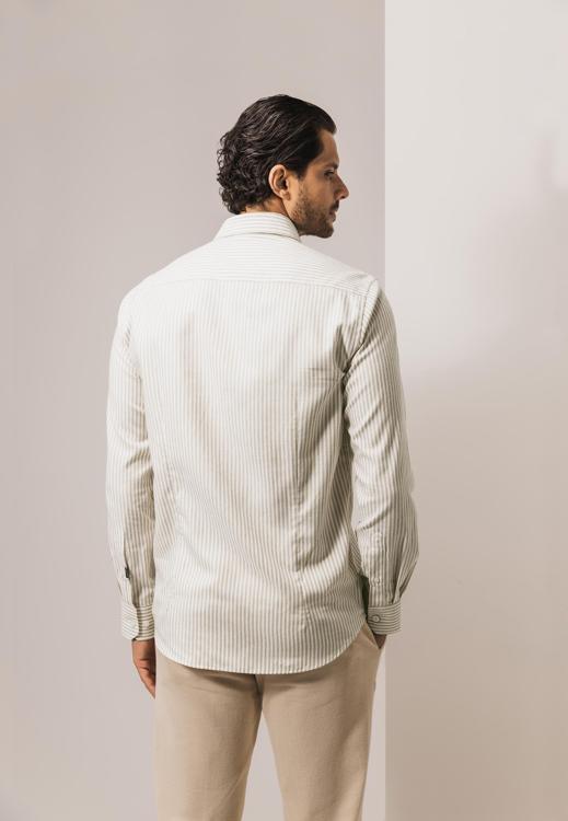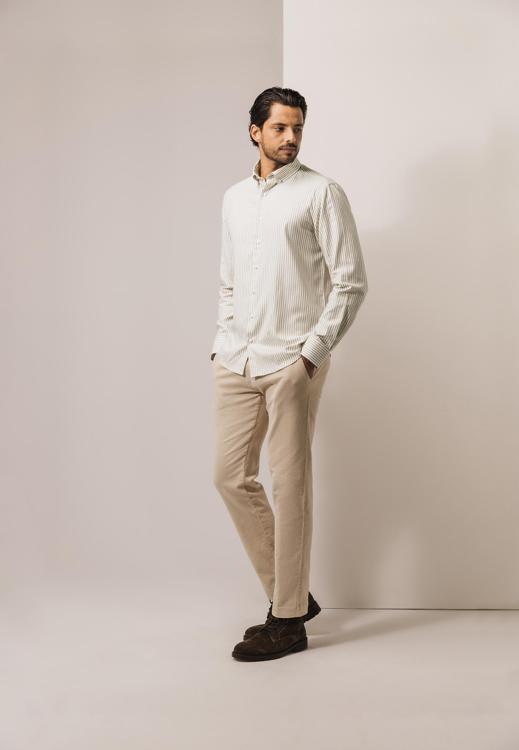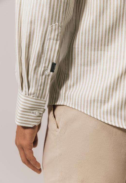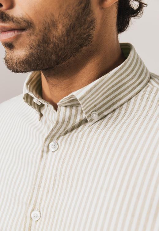 Dit beige gestreepte overhemd van State of Art combineert een klassiek streeppatroon met een moderne pasvorm. Het overhemd heeft een button-down kraag en lange mouwen met manchetten die je perfect kunt afstemmen op je dagelijkse outfit. De lichte beige tint met subtiele streepjes zorgt voor een veelzijdige basis in je garderobe. Het katoen-lyocell materiaal voelt zacht aan op je huid en biedt uitstekende ventilatie gedurende de dag.