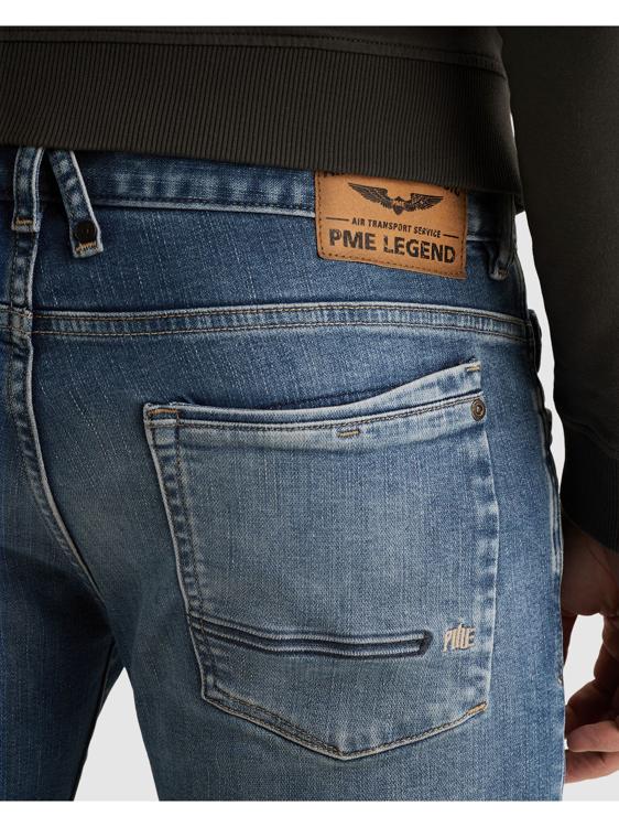Deze blauwe jeans van PME Legend heeft een authentieke wassing met lichte slijtageplekken. De spijkerbroek kenmerkt zich door de vijf zakken waaronder een kleine muntzak en contrasterende stikseldetails. Het model heeft een rechte pijp die comfortabel aansluit zonder te knellen.