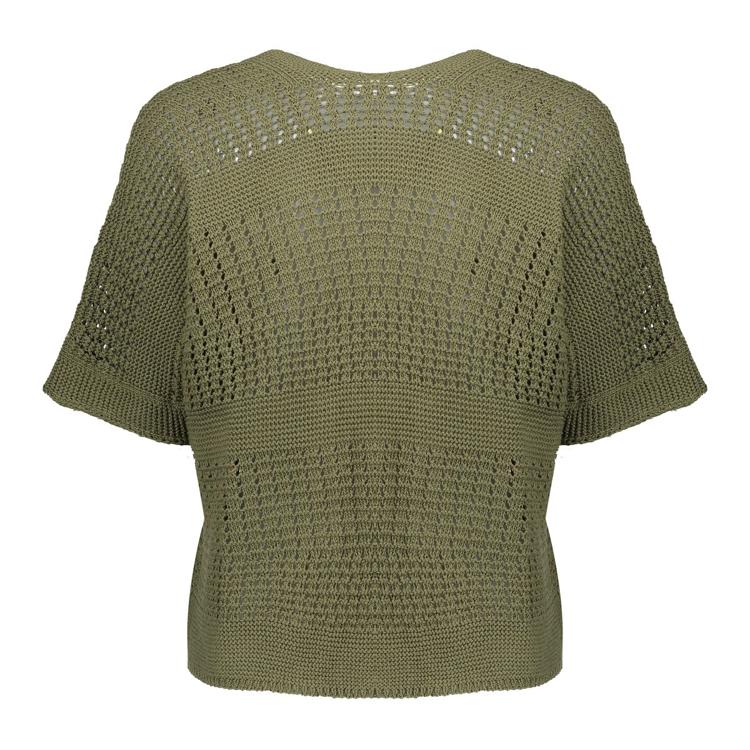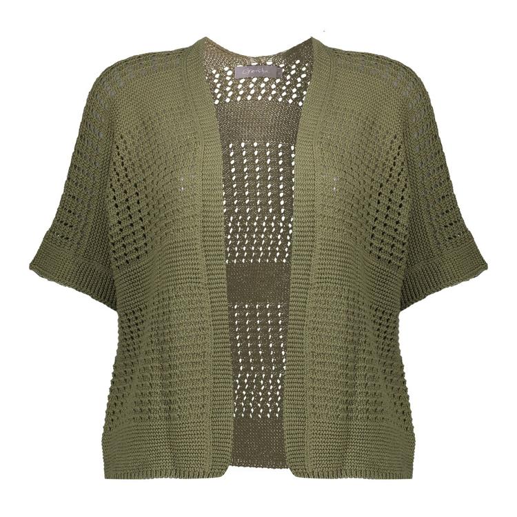 Dit groene vest van Geisha combineert comfort met eigentijdse stijl. Het gebreide vest heeft een open voorkant zonder sluiting en valt losjes om je lichaam. De korte mouwen en het opengewerkte breipatroon maken dit vest ideaal voor de tussenseizoenen. De mix van katoen en acryl zorgt voor een aangenaam draaggevoel dat zacht aanvoelt op je huid en je bewegingsvrijheid geeft. Het vest heeft een relaxte pasvorm met een rechte, heuphoge lengte.