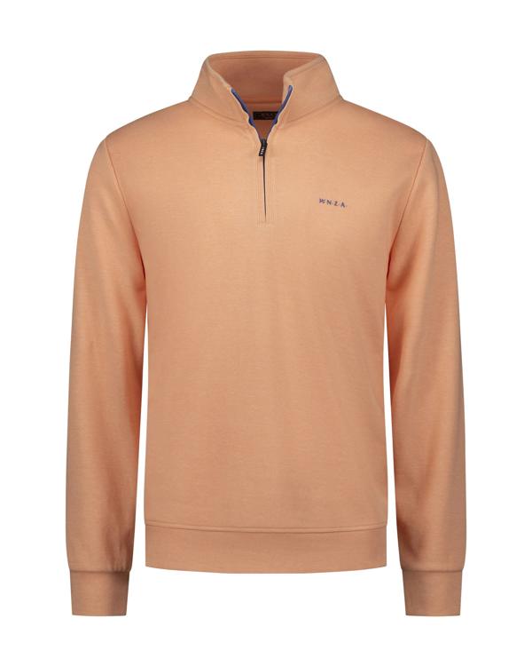 Deze zalmoranje sweater van N.Z.A. heeft een stoere uitstraling met praktische details. Het model heeft een opstaande kraag met ritssluiting tot halverwege de borst, waardoor je de temperatuur makkelijk regelt. Op de borst staat subtiel het N.Z.A. logo geborduurd. De lange mouwen en rechte pasvorm zorgen voor bewegingsvrijheid tijdens je dagelijkse activiteiten. Het katoen-polyester materiaal voelt comfortabel aan tegen de huid en behoudt zijn vorm, ook na regelmatig wassen.