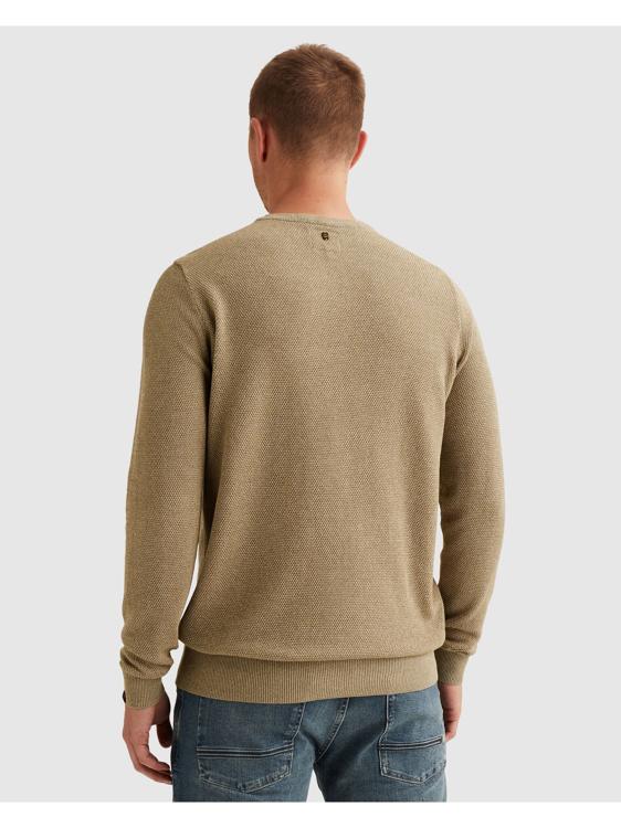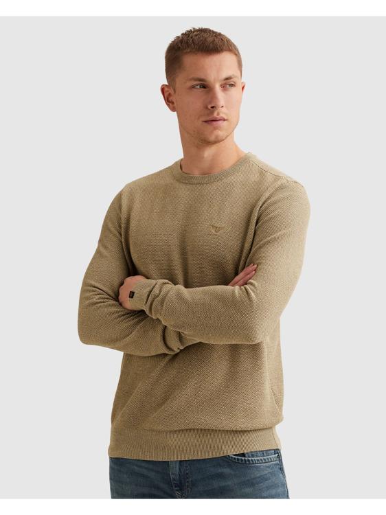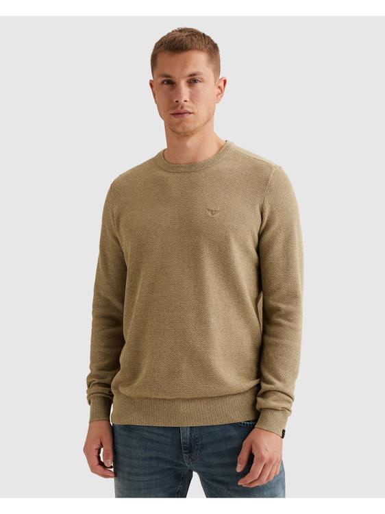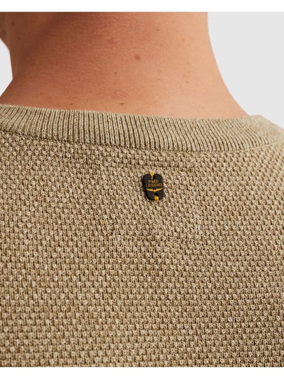 Deze kaki groene trui heeft een klassieke ronde hals en lange mouwen. Het kledingstuk kenmerkt zich door de fijne breistructuur met een subtiel wafelpatroon dat over het hele oppervlak loopt. Op de linkerborst is het kenmerkende PME logo geborduurd. De ribgebreide boorden bij de hals, mouwen en onderrand zorgen voor een nette afwerking.