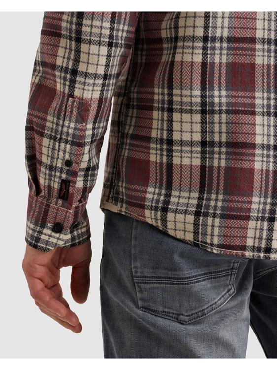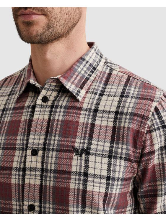 Dit overhemd van PME Legend kenmerkt zich door het opvallende ruitpatroon in warme bordeauxrode en beige tinten. Het hemd heeft lange mouwen met knoopsmanchetten en een klassieke puntkraag. De doorlopende knoopsluiting met contrasterende donkere knopen geeft dit overhemd een stoere uitstraling.