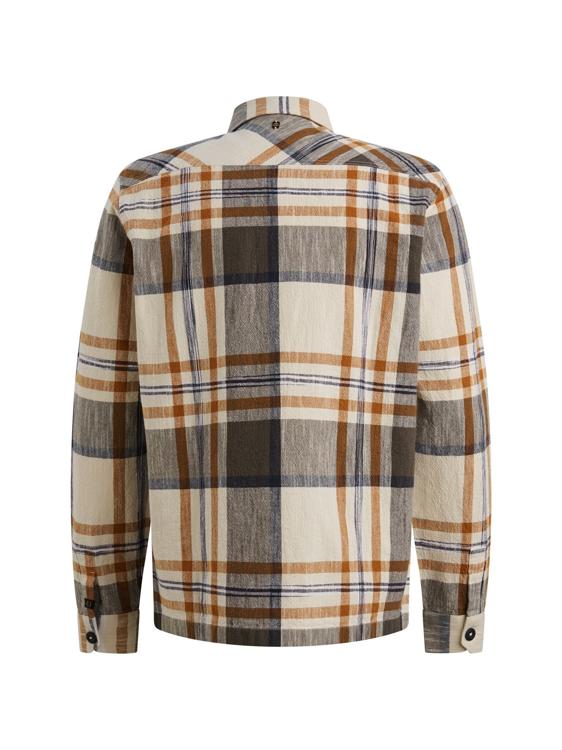 Dit overhemd van PME Legend combineert stoere uitstraling met tijdloze stijl. Het beige, bruine en grijze ruitpatroon geeft dit shirt een authentiek karakter. De lange mouwen, klassieke kraag en doorlopende knoopsluiting maken het overhemd compleet. Twee borstzakken met klepjes en drukknopen bieden praktische opbergruimte, terwijl de contrasterende details op de zakken zorgen voor een avontuurlijke twist.