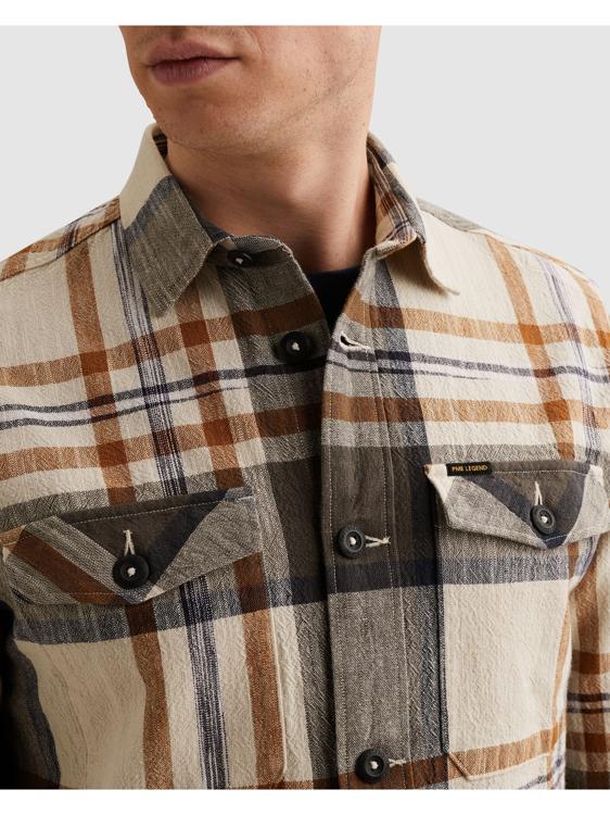 Dit veelzijdige herenshirt van PME Legend draag je zowel open over een basic T-shirt als gesloten voor een nette casual look. De neutrale kleuren maken het overhemd PSI2602218-8127 makkelijk te combineren met verschillende broeken uit je garderobe. Voor een stoere dagelijkse outfit combineer je dit geruite shirt met een donkere jeans en stevige boots. De ruime pasvorm biedt bewegingsvrijheid en draagcomfort tijdens al je activiteiten. Dit kwaliteitsoverhemd past perfect bij de avontuurlijke man die houdt van tijdloze heren kleding PME Legend met een robuuste uitstraling.