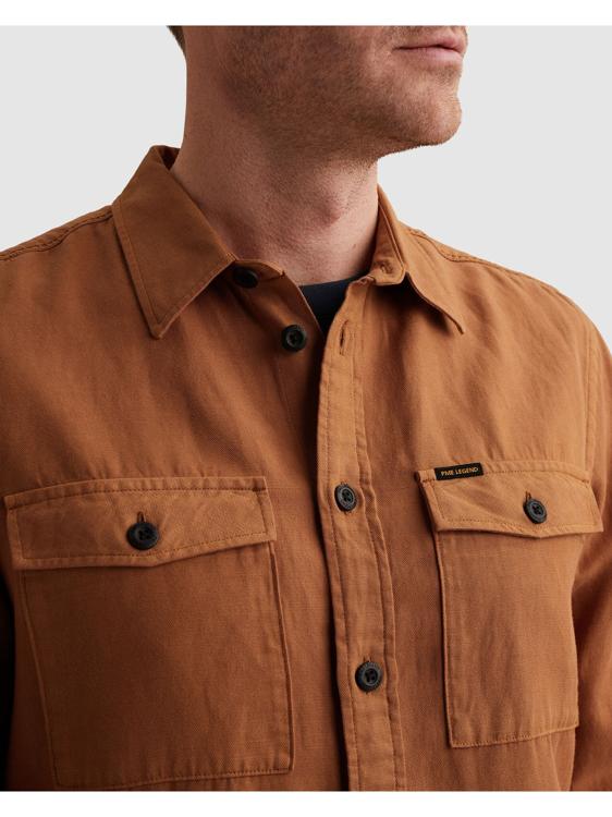Dit bruine overhemd van PME Legend heeft een stoere uitstraling door de twee borstzakken met klep. Het shirt heeft lange mouwen en een klassieke kraag die je zowel open als dicht kunt dragen. De doorlopende knoopsluiting en de comfortabele pasvorm maken dit herenoverhemd veelzijdig in gebruik. Het bruine overhemd is uitgevoerd in een soepele stof die prettig aanvoelt.