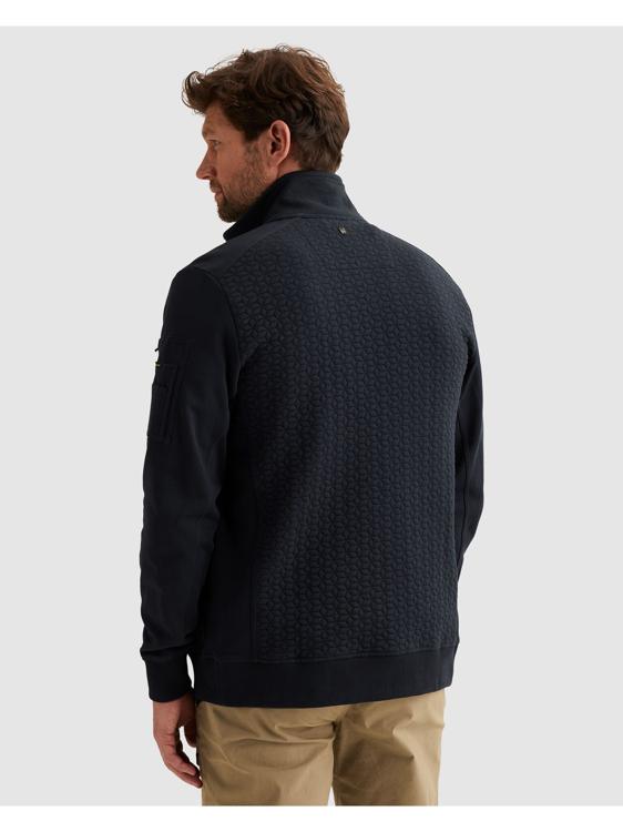 Dit donkerblauwe vest van PME Legend heeft een stoere uitstraling met subtiele textuur over het voorpand. Het vest beschikt over een doorlopende ritssluiting met goudkleurige details en een opstaande kraag. Op de linkerborstzijde zie je het kenmerkende PME Legend label in leer-look. De mouwen zijn uitgevoerd in gladde stof voor een mooi contrast met het getextureerde voorpand.