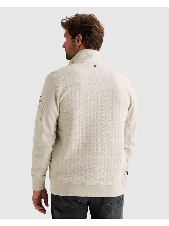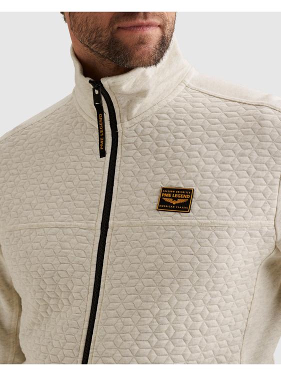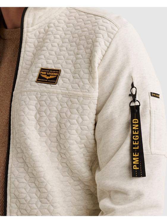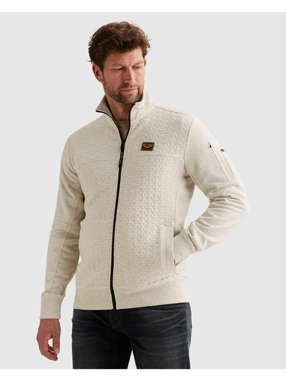 Dit lichtgrijze vest van PME Legend heeft een karakteristieke structuur door het reliëfpatroon aan de voorzijde. Het vest wordt gesloten met een doorlopende ritssluiting en heeft een opstaande kraag. De lange mouwen en elastische boorden zorgen voor een comfortabele pasvorm. Op de borst zit het kenmerkende PME Legend badge.