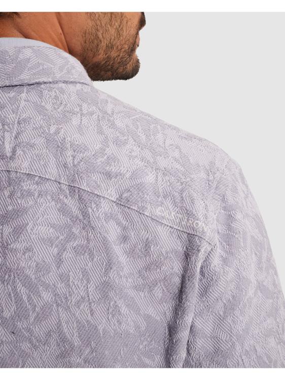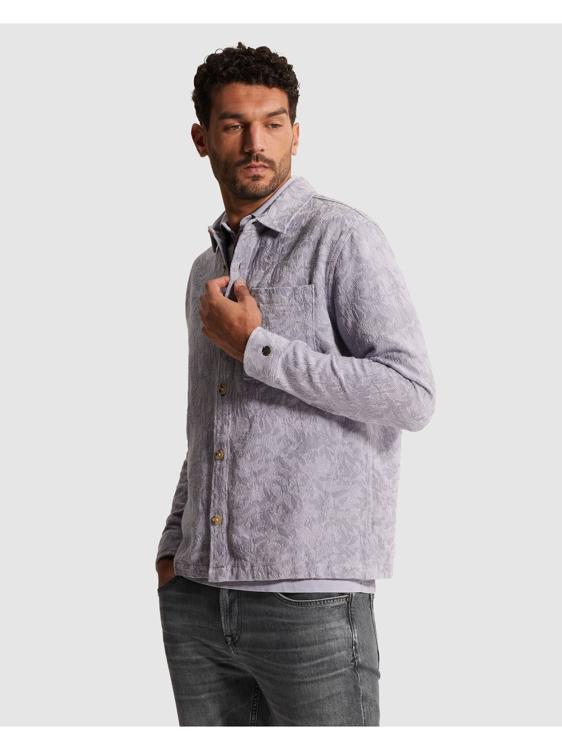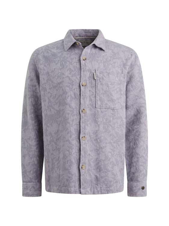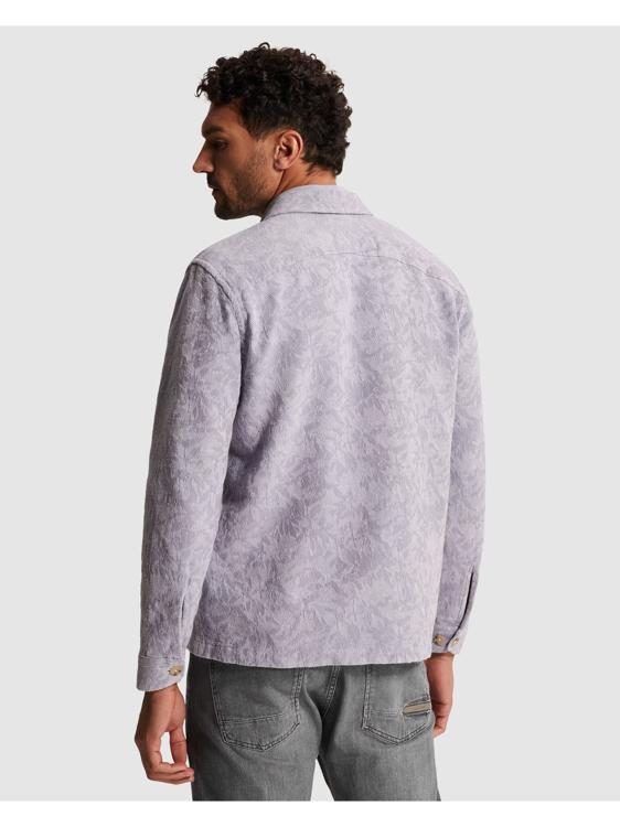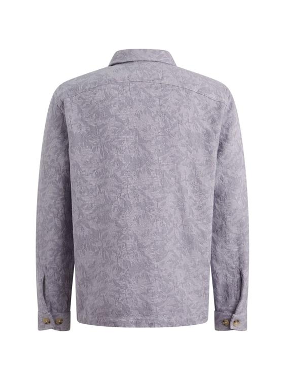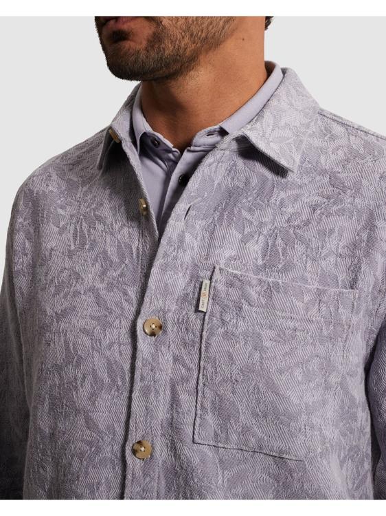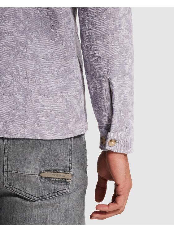 Dit grijze overhemd met lange mouwen kenmerkt zich door een opvallende all-over print met subtiele palmbladmotieven. Het shirt heeft een klassieke puntkraag en sluit met knopen aan de voorzijde. De borstzak links is voorzien van een ritssluiting voor extra functionaliteit. De contrasterende bruine knopen geven het geheel een stoere uitstraling die past bij de rebellische identiteit van Cast Iron.