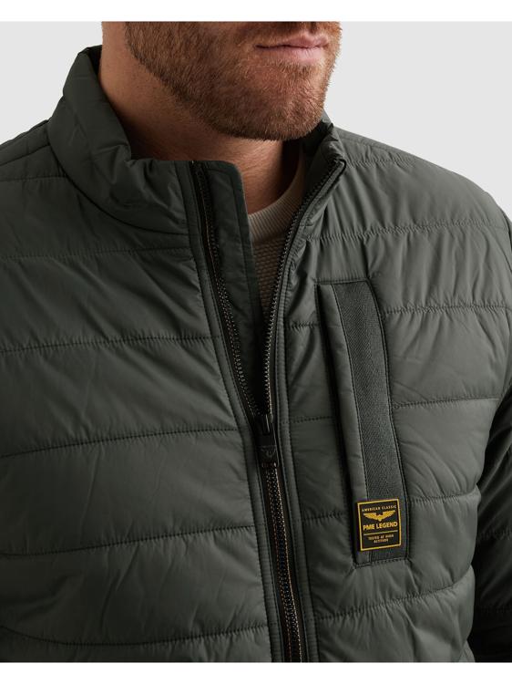 Deze groene jack van PME Legend biedt warmte zonder volume. Het lichtgewicht model heeft horizontale stiksels die je een stoere uitstraling geven. De opstaande kraag beschermt je tegen wind, terwijl de ritssluiting voor het gemak zorgt. Het embleem op de borst verwijst naar de avontuurlijke roots van het merk. Lange mouwen maken deze jas compleet voor koelere dagen.