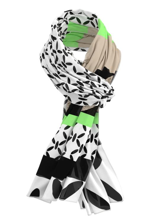 Deze veelzijdige Frank Walder sjaal draag je losjes om je hals voor een speels accent bij een effen blouse of jurk. De zwart-witte basis met groene details past uitstekend bij zowel donkere als lichte kledingstukken. Combineer het accessoire met een basic shirt en blazer voor een verzorgde dagelijkse look. Door de verschillende patronen in één design kun je deze sjaal bij diverse outfits uit je garderobe dragen. De lichte stof maakt het accessoire geschikt voor alle seizoenen.