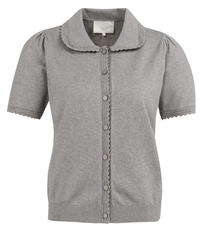 Combineer dit korte mouw vestje met een witte broek voor een frisse zomerlook. Bij koelere dagen draag je het damesvest over een basic shirt met lange mouwen. De neutrale grijze kleur past bij vrijwel elke kleur in je garderobe. Voor een complete outfit kies je matching items van Yaya. Dit veelzijdige kledingstuk uit de Yaya collectie werkt zowel zakelijk als casual. Draag het open als luchtig jasje of gesloten als elegante gebreide top.