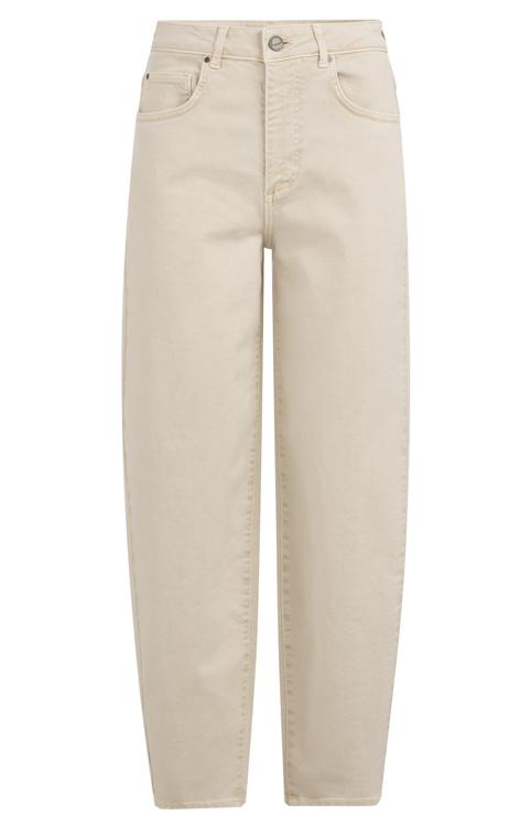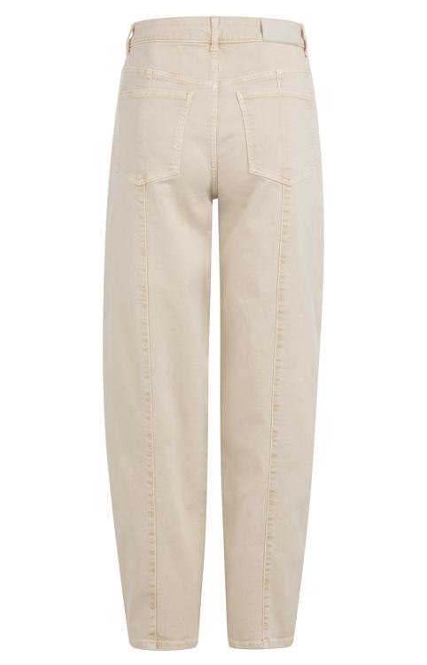 Deze beige jeans van Yaya heeft een relaxte pasvorm met een hoge taille en taps toelopende pijpen. De lichte crèmekleurige tint maakt dit model veelzijdig en tijdloos. Door de katoenmix met een vleugje elastaan zit de broek comfortabel en behoudt ze haar vorm gedurende de dag.