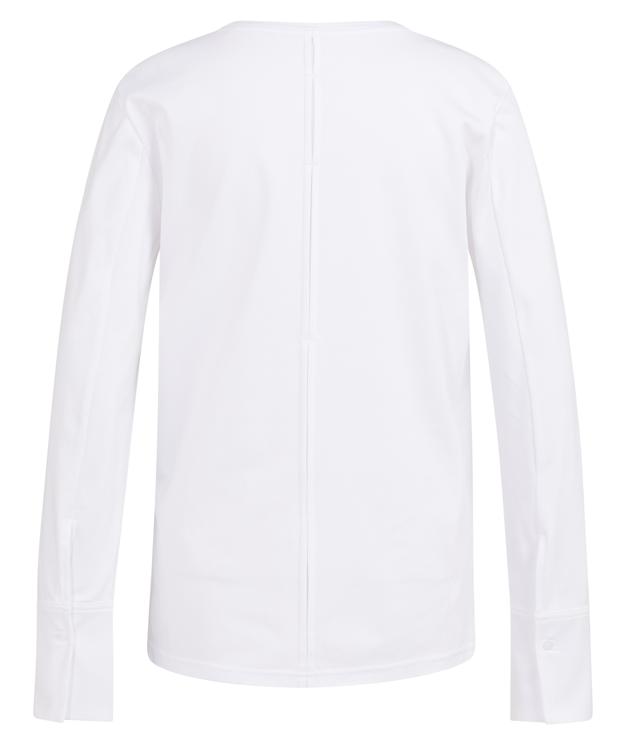 Dit witte longsleeve shirt van YAYA biedt een strakke basis voor je garderobe. Het katoenen materiaal voelt zacht aan op de huid en ademt prettig tijdens het dragen. De ronde halslijn en lange mouwen zorgen voor een klassieke uitstraling die je het hele jaar door kunt dragen. De rechte pasvorm valt soepel langs het lichaam zonder te knellen. Een middellijn op de achterkant geeft het shirt een verzorgde afwerking.