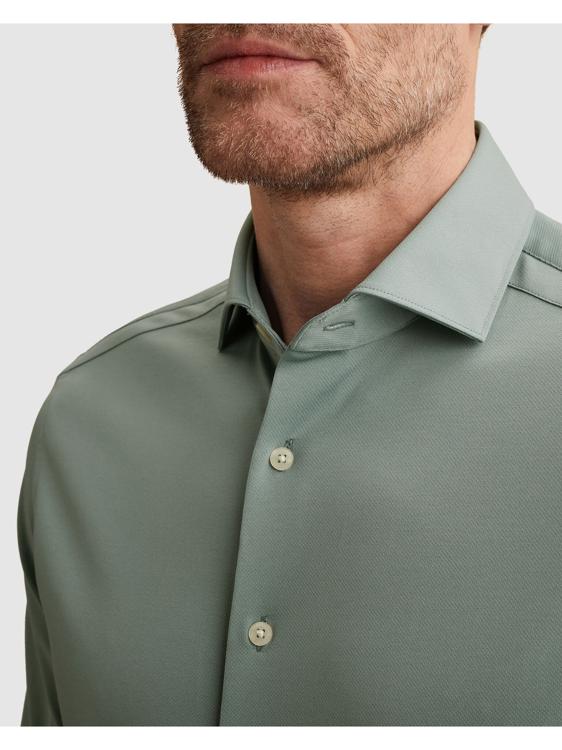 • Hoogwaardige katoenmix voor ademend draagcomfort • Slim fit pasvorm met moderne lijnen • Grijsgroene kleur voor veelzijdige styling • Manchetten met knopen voor verstelbare pasvorm • Knoopsluiting over hele lengte met toonkleurige knopen
