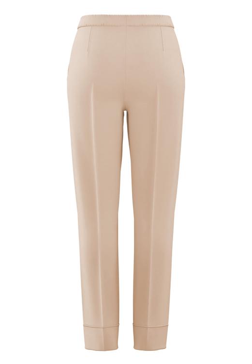 • 84% polyester, 16% elastane • Rechte pijpen met omgeslagen zoom • Elastische tailleband voor comfort • Neutrale beige kleur • Kreukbestendig en vormvast materiaal