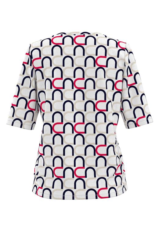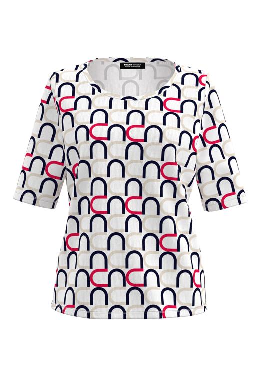 De Frank Walder T-Shirt S61-102402996 combineert makkelijk met een effen broek of rok in één van de kleuren uit de print. Door het veelzijdige kleurenpalet past dit shirt bij verschillende items uit je garderobe. Voor een verzorgde dagelijkse look draag je dit damesshirt met een donkere pantalon en comfortabele loafers. Het grafische dessin maakt dit kledingstuk geschikt voor zowel werk als vrije tijd. Dankzij de tijdloze vormgeving blijft dit Frank Walder shirt jarenlang een fijne basis in je kledingkast.