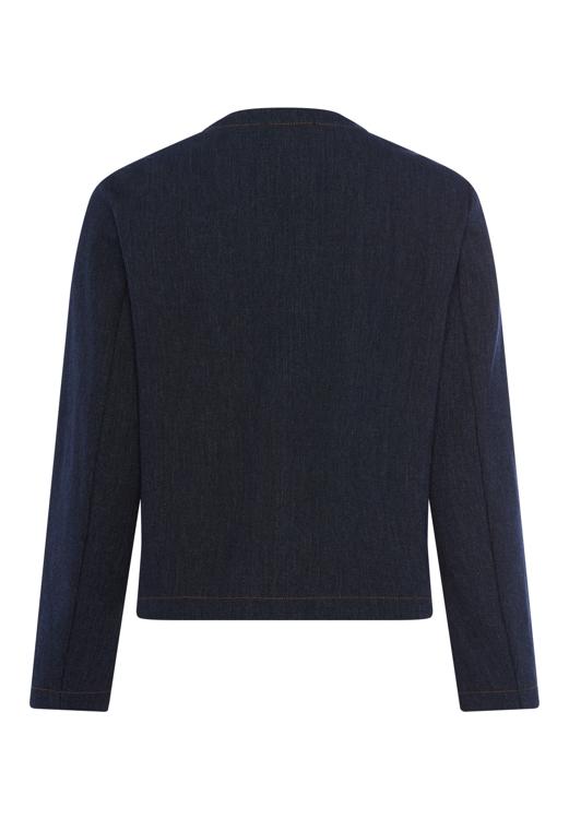 Deze donkerblauwe blazer combineert klassieke elegantie met modern draagcomfort. Het model heeft een getailleerde pasvorm met ronde halslijn zonder kraag en vier goudkleurige knopen aan de voorzijde. De twee decoratieve klepzakken met knoop geven de blazer een verfijnde uitstraling. Dankzij de mix van katoen, viscose, polyester en elastane voelt het jasje soepel aan en biedt het bewegingsvrijheid. De lange mouwen zorgen voor een verzorgde look door het jaar heen.