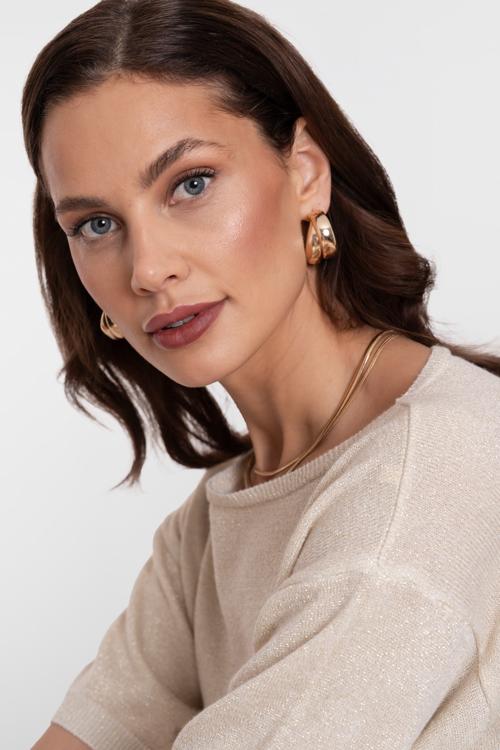 Deze lichtbeige trui met korte mouwen combineert comfort met een eigentijdse uitstraling. Het model heeft een ronde hals en valt losjes om je lichaam dankzij de relaxte pasvorm. De fijngebreide structuur van modal, acryl en polyester voelt zacht op je huid en ademt prettig door. De ribgebreide zoom aan de onderkant zorgt voor een subtiele afwerking.