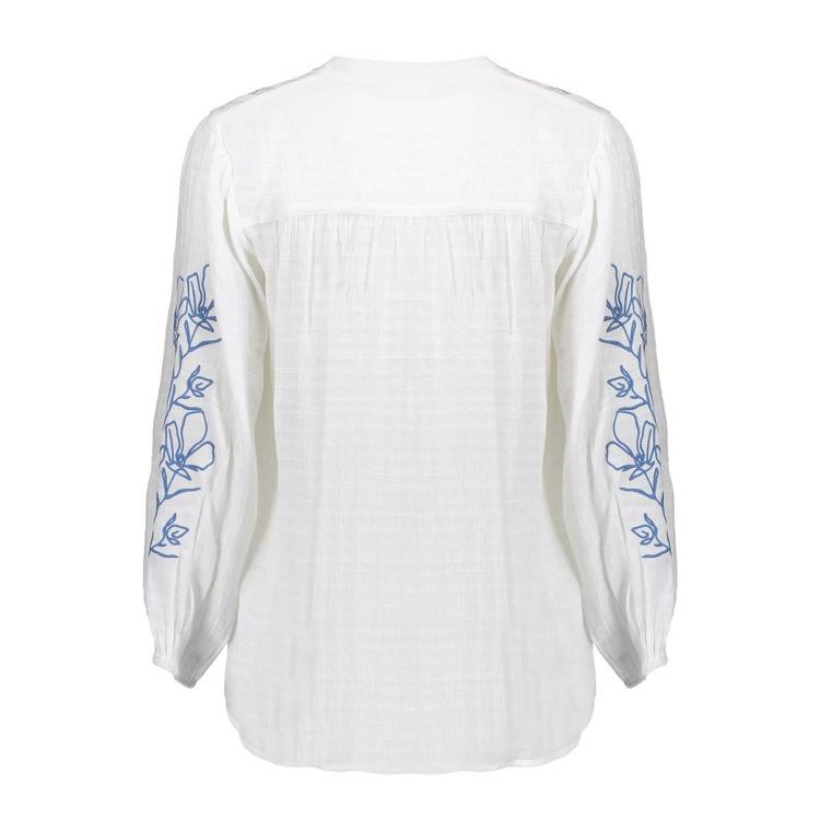 Witte Blouse met Blauwe Borduurdetails van Geisha
