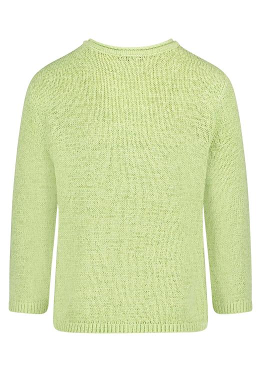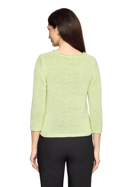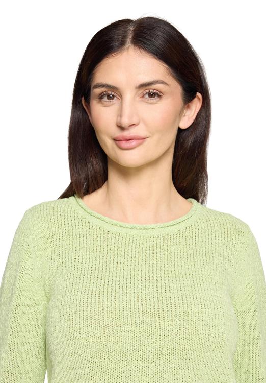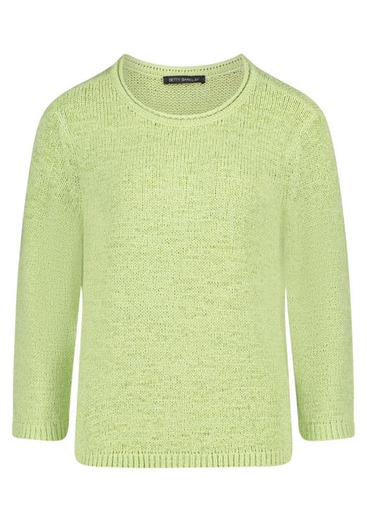 Deze zachte trui van Betty Barclay combineert tijdloze elegantie met draagcomfort. Het model in frisse limoengroene kleur heeft een ronde halslijn en driekwart mouwen, perfect voor het tussenseizoen. De fijngebreide structuur van acryl met polyamide voelt zacht aan op je huid en behoudt zijn vorm, zelfs na veelvuldig dragen. Het rechte silhouet zorgt voor een comfortabele pasvorm die je makkelijk kunt combineren.