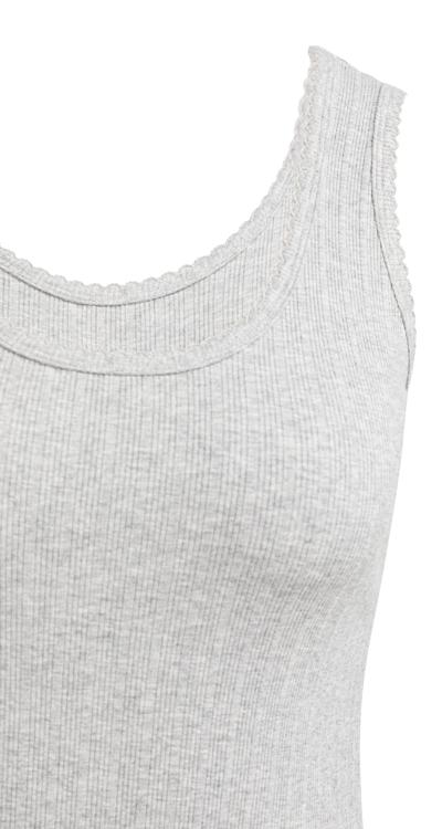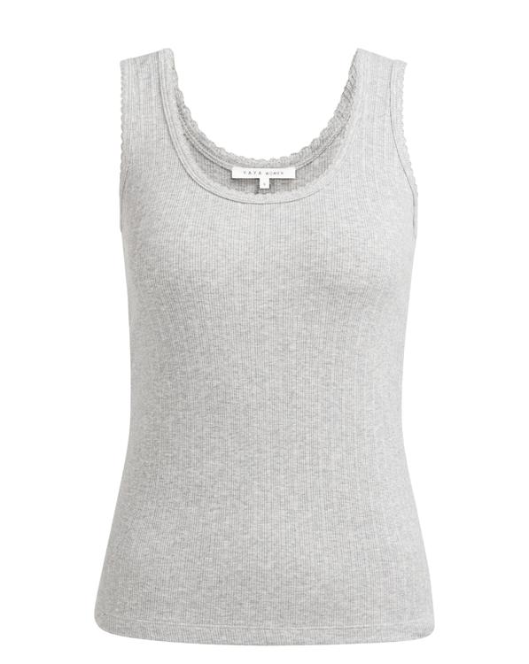 Deze mouwloze top van YAYA heeft een lichtgrijze kleur met een zachte melange uitstraling. Het kledingstuk kenmerkt zich door de geribbelde structuur en de klassieke ronde hals. De aansluitende pasvorm volgt de natuurlijke lichaamslijn en zorgt voor een comfortabel draaggevoel dankzij de mix van katoen, modal en elastaan. Het materiaal voelt zacht aan tegen je huid en biedt voldoende stretch voor bewegingsvrijheid gedurende de hele dag.