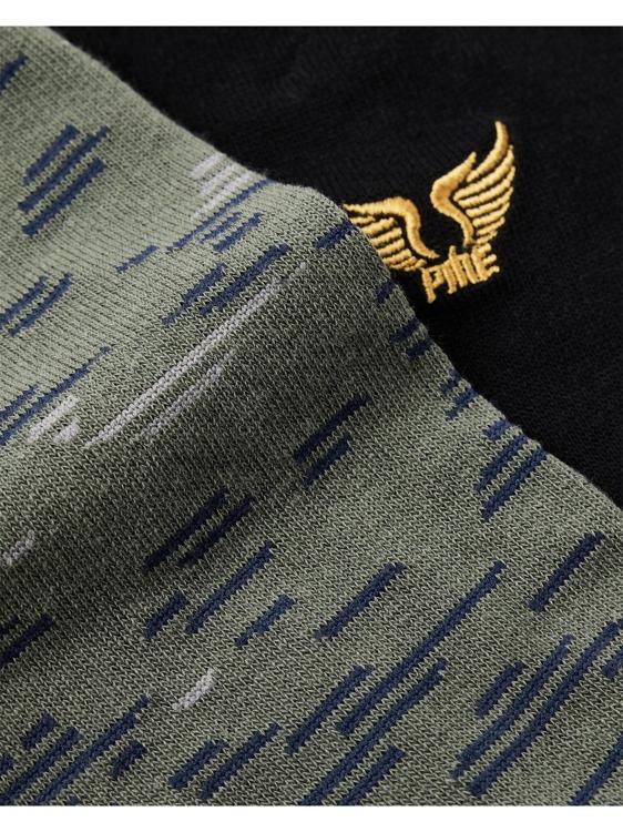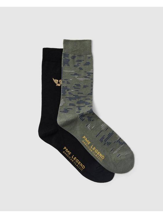 Deze stoere herensokken van PME Legend combineren comfort met het kenmerkende avontuurlijke karakter van het merk. Het setje bestaat uit twee paar sokken: een zwarte variant met het gouden gevleugelde logo en een groene sok met blauw streepdessin. De sokken zijn voorzien van het iconische PME tekst op de rand voor extra herkenning.