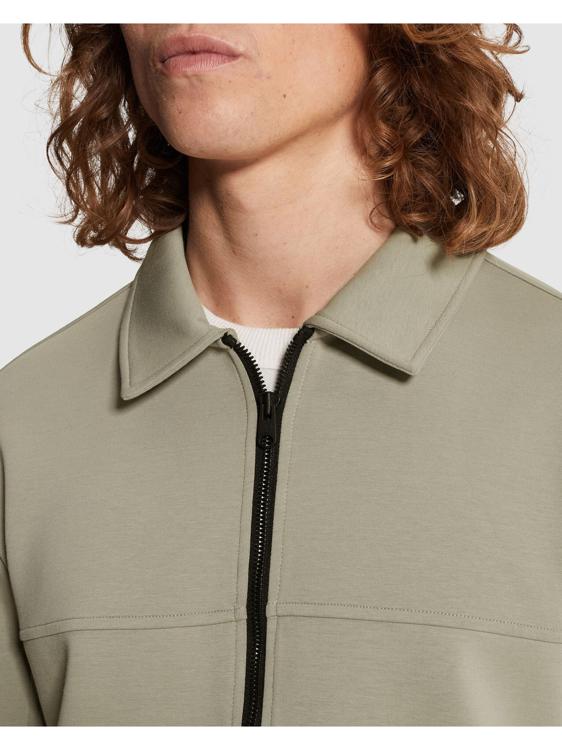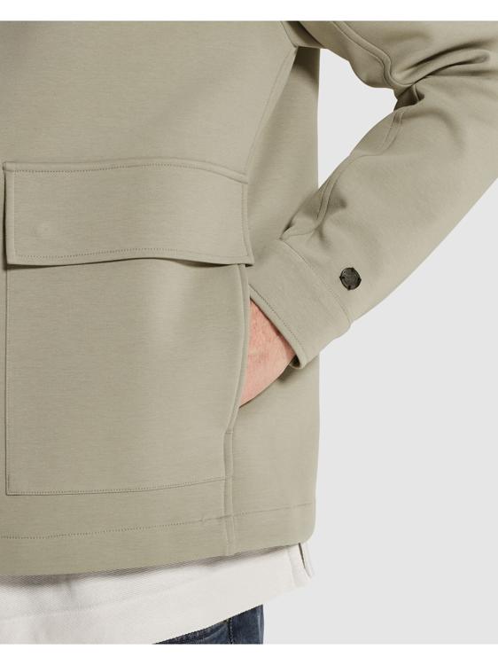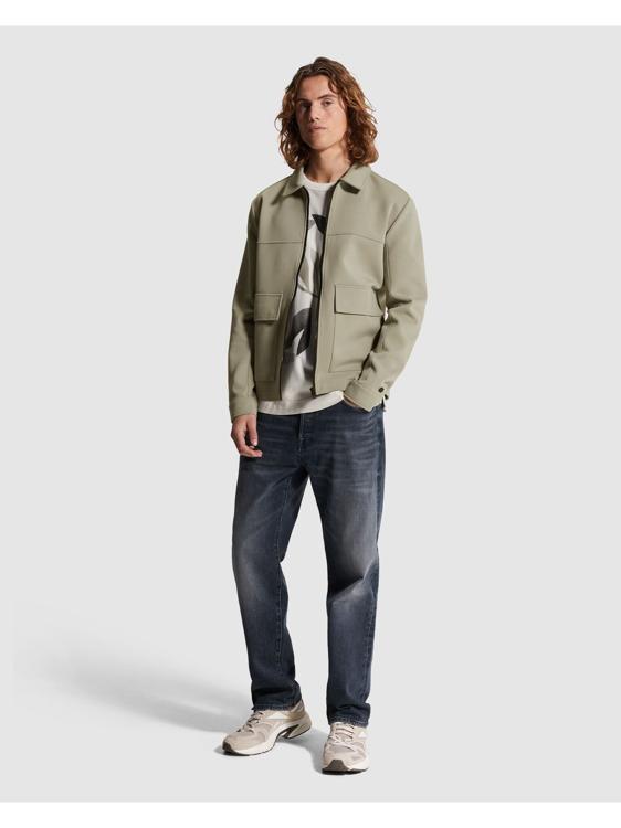 Dit jack in olijfgroen combineert stoere uitstraling met praktische details. De rechte snit zorgt voor een comfortabele pasvorm, terwijl de zwarte ritssluiting een sterk contrast vormt met de zachte kleur. Twee opgestikte borstzakken en twee steekzakken op heuphoogte bieden volop bergruimte. De klassieke kraag en lange mouwen met manchetknopen geven het jack een verzorgde afwerking.