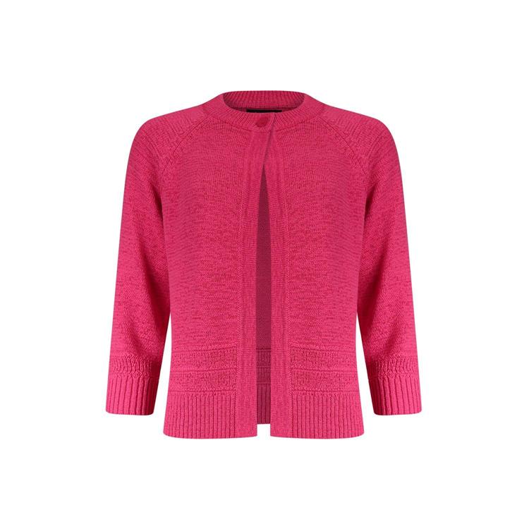 Stijladvies Dit roze vest uit de nieuwe collectie dames kleding Roberto Sarto combineert makkelijk met een witte broek of jeans voor een frisse look. De open voorkant vraagt om een bijpassend shirt of top eronder. Dankzij de driekwart mouwen draag je deze gebreide trui Roberto Sarto 611197-R935 comfortabel in verschillende seizoenen. De levendige roze kleur voegt direct een vrolijk accent toe aan je outfit.