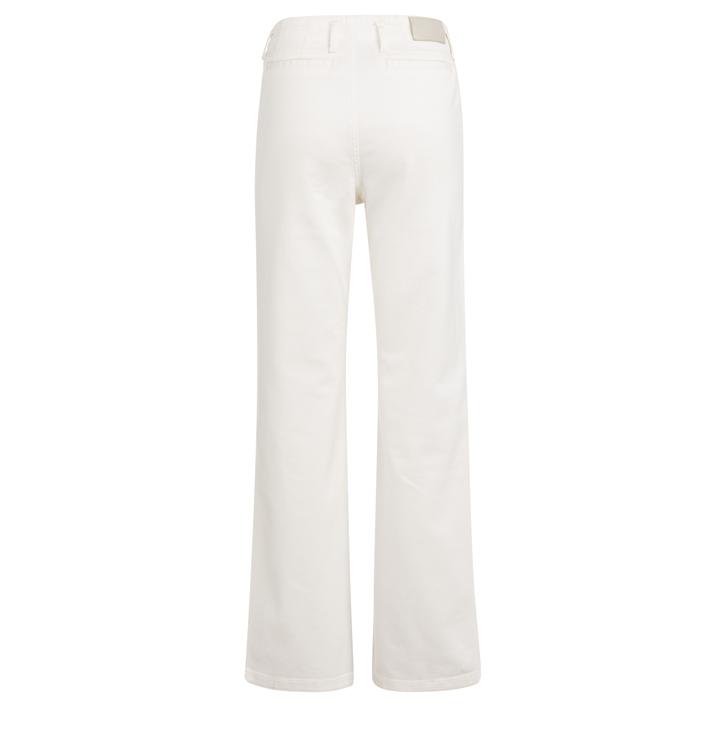 Deze witte jeans van YAYA heeft een wide leg pasvorm die soepel valt vanaf de heupen. De broek is gemaakt van katoen met een vleugje elastaan, waardoor de stof comfortabel meebeweegt en de hele dag prettig zit. De off-white kleur geeft de jeans een frisse, tijdloze uitstraling. Aan de voorzijde zit een knoopsluiting met riemlussen langs de tailleband. De afgewerkte zoom zonder omslag zorgt voor een clean finish.