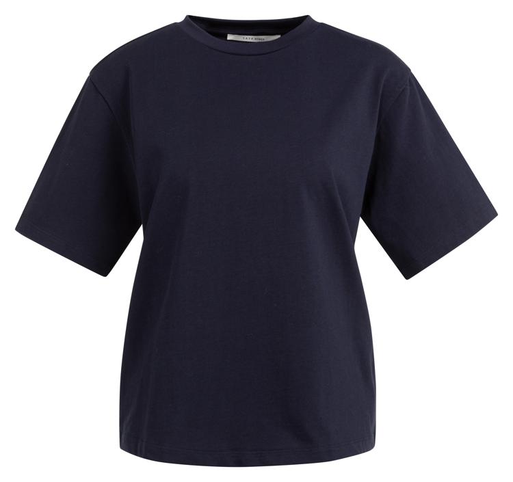 De donkerblauwe kleur maakt dit Yaya dames shirt goed te combineren met verschillende outfits. Draag het bij een high waist jeans en sneakers voor een casual dagelijkse look, of stop het in een wijde linnen broek voor iets meer verfijning. Met een blazer erbij creëer je een nette maar comfortabele outfit. Dit katoenen t-shirt is een tijdloos item in je garderobe dat je op veel manieren kunt stylen.
