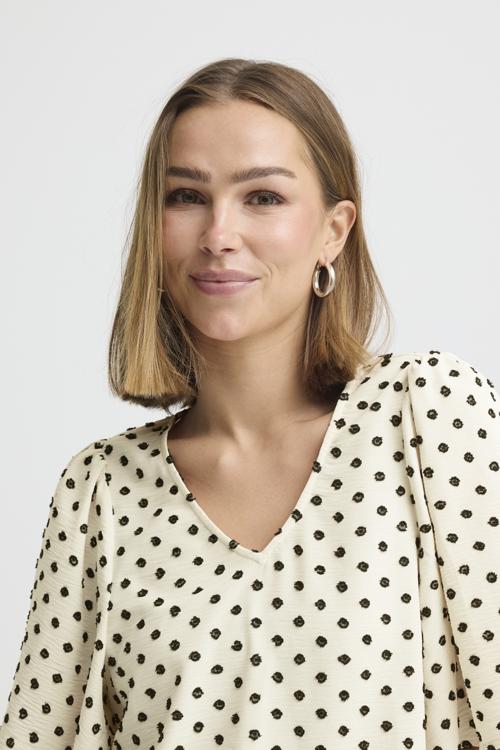 Ichi Witte Blouse met Stippenprint