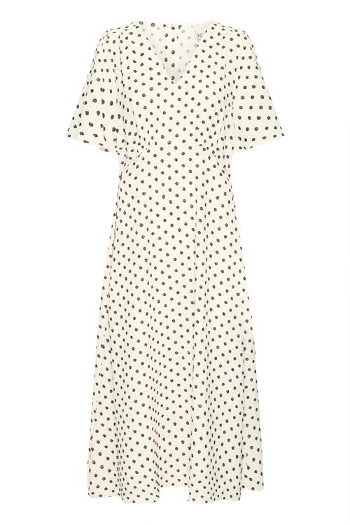 Ichi Witte Midi Jurk met Stippenprint