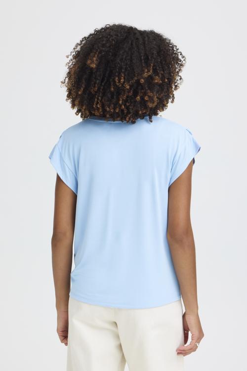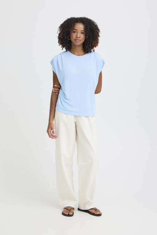 Ichi Lichtblauw T-Shirt met Kapmouwtjes