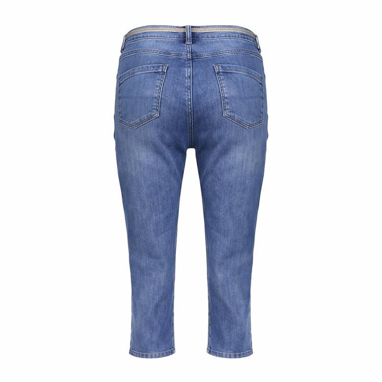 Deze lichtblauwe jeans van Geisha heeft een casual, vrouwelijke uitstraling dankzij het decoratieve koord in de taille. De Emma jeans heeft een medium blue wash met subtiele vervaagde accenten op de bovenbenen. De omgeslagen pijpen geven een speelse touch aan het ontwerp. Door de mix van katoen, polyester en elastaan zit deze denim broek comfortabel en beweeg je de hele dag soepel mee.